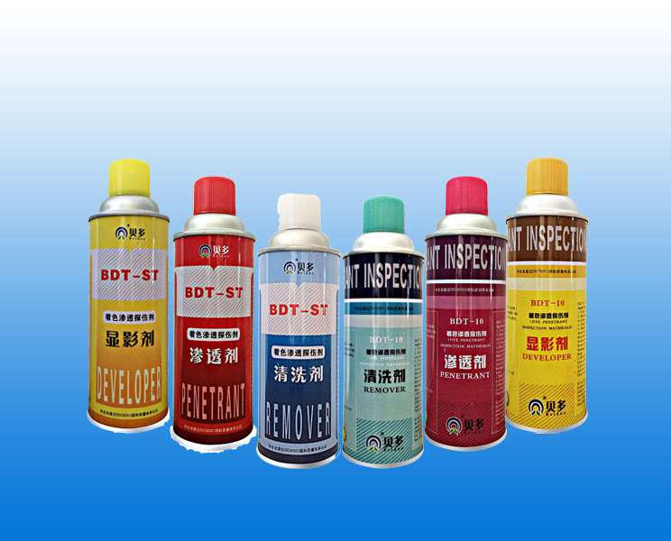 著色滲透探傷劑用于非鐵磁性材料表面缺陷檢測,產(chǎn)品顯像迅速,清晰,線條細,不暈染。廣泛應(yīng)用于化工、造船、發(fā)電、航空、機械、汽車、冶金、石油、鐵路、受壓容器等部門的探傷檢測。